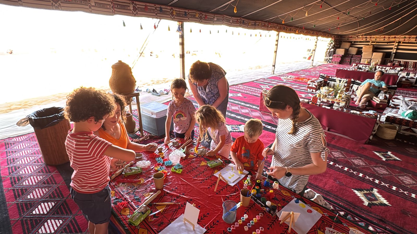 From the first moments of adventure, kids will leap into a world of fun: thrilling treasure hunts, energetic desert games, and creative workshop stations where their imaginations can run free. At our painting station, they’ll craft colorful masterpieces inspired by the desert’s sunlit beauty, while the pottery station offers hands-on fun shaping clay into unique keepsakes.